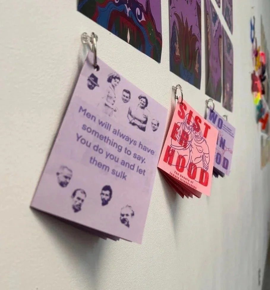 The three risograph printed zines hanging with the posters not only help with telling a narrative but they also helped me in refocusing on hope as I was working with a heavy subject.